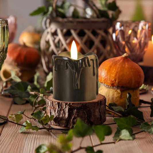 Black Dripping Wax Flameless Votive Candles - Set of 6 - Eywamage