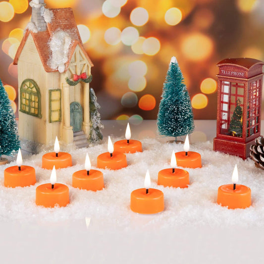 Orange Flameless Wax Tealights with Remote - Set of 10 - Eywamage