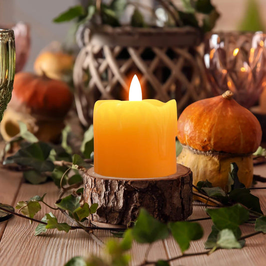 Orange Real Wax LED Votive Candles with Remote - Set of 6 - Eywamage