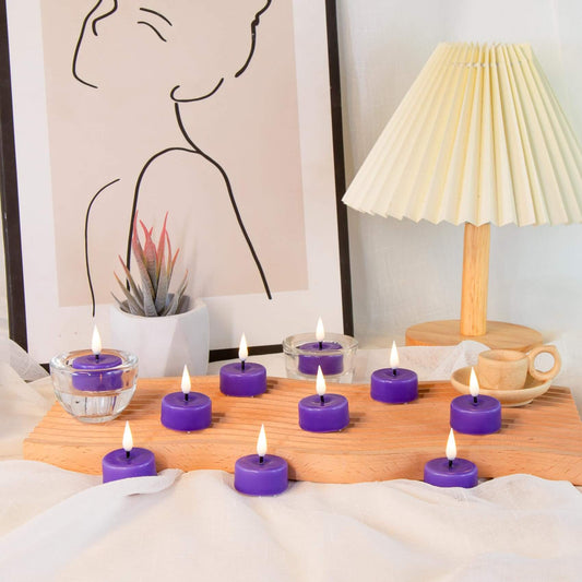 Purple Flameless Wax Tealights with Remote - Set of 10 - Eywamage