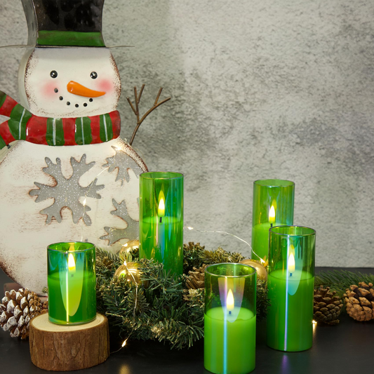 Slim Tall Green Glass Flameless Candles with Remote-Set of 5-Eywamage
