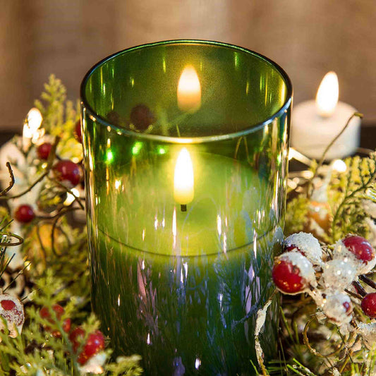Velas sin llama de vidrio verde Eywamage con control remoto a batería