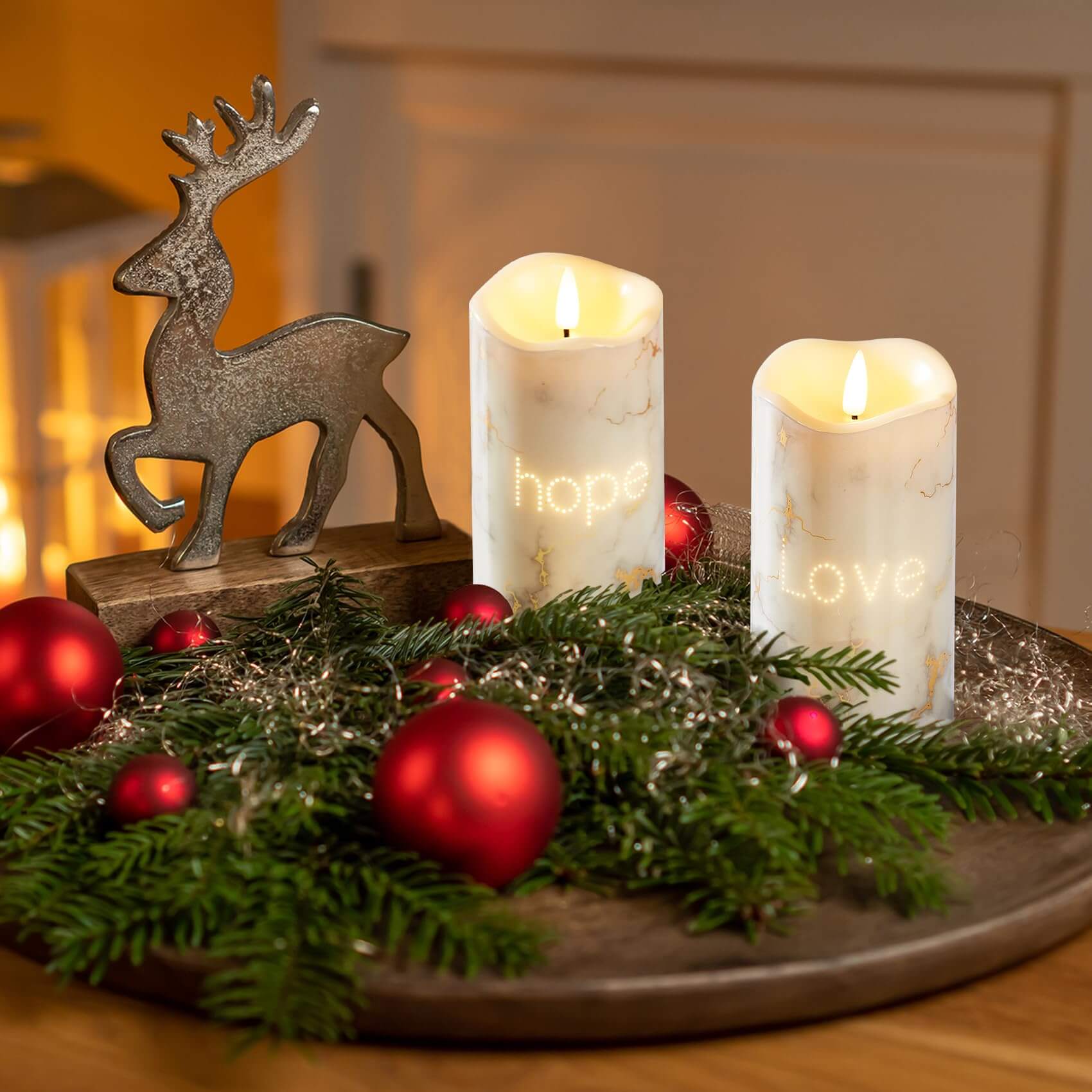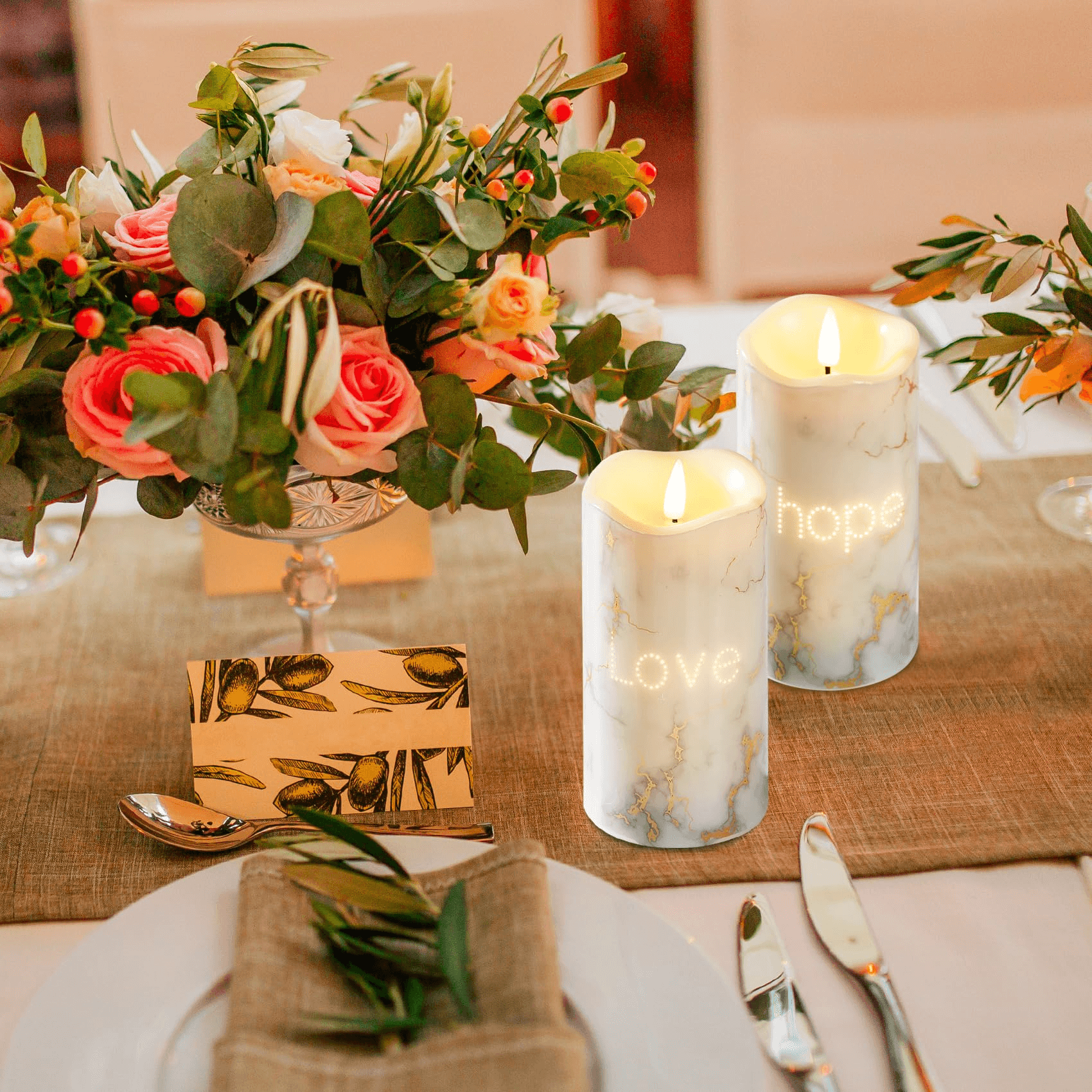 Faux Marble Battery Operated Flickering LED Candles-Set of 3-Eywamage
