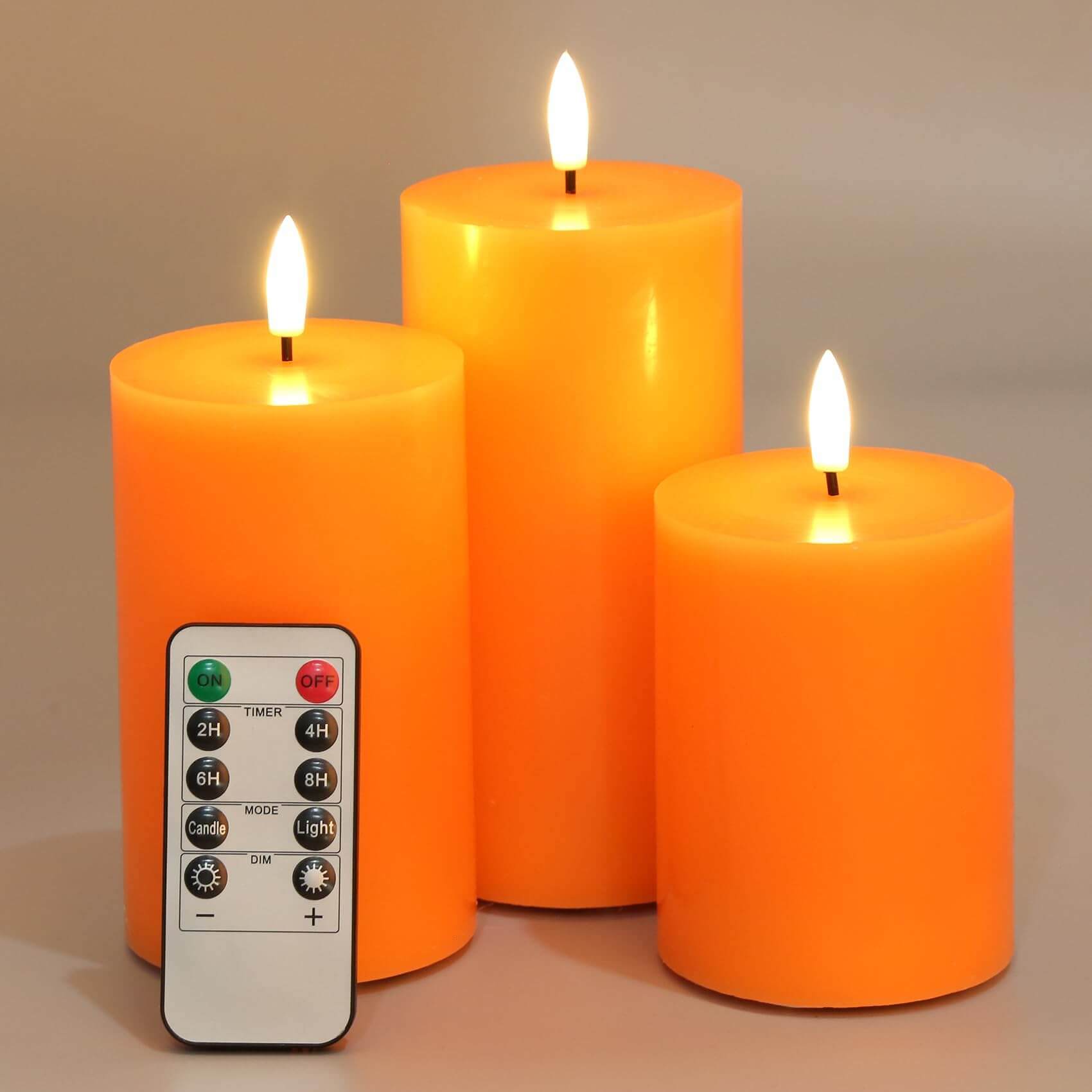 Orange Flat Top Flameless Pillar Candles with Remote-Set of 3-Eywamage