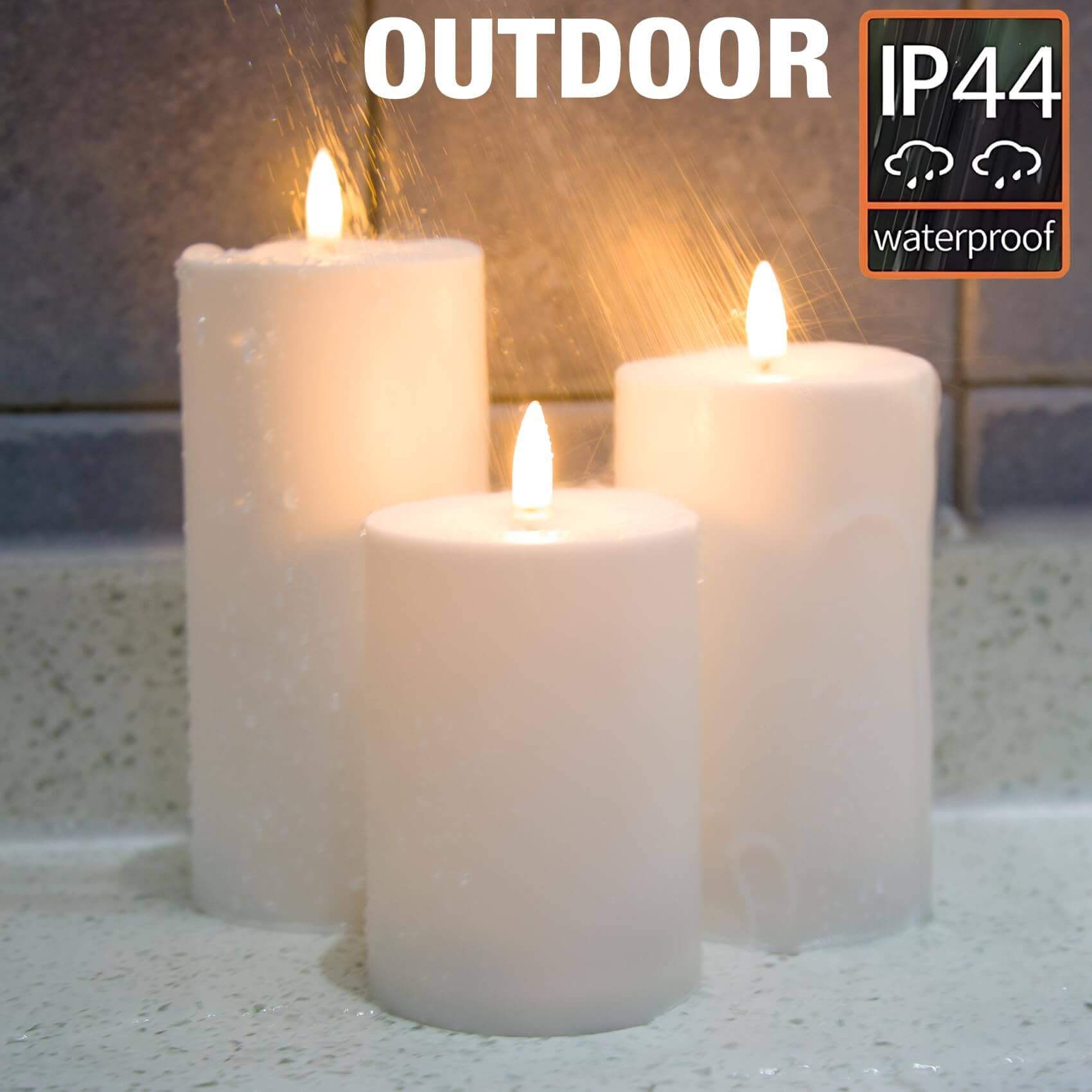 Eywamage White Waterproof Flameless Pillar Candles with Remote, Flickering Outdoor LED Battery Candles Set of 3