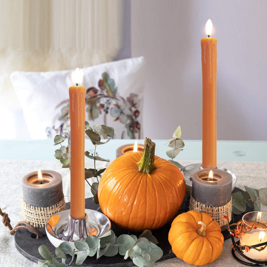 Orange Dripping Wax Taper LED Candles with Remote- Set of 6- Eywamage