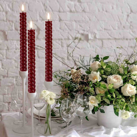 Eywamage Bougies coniques sans flamme en spirale rouge avec télécommande
