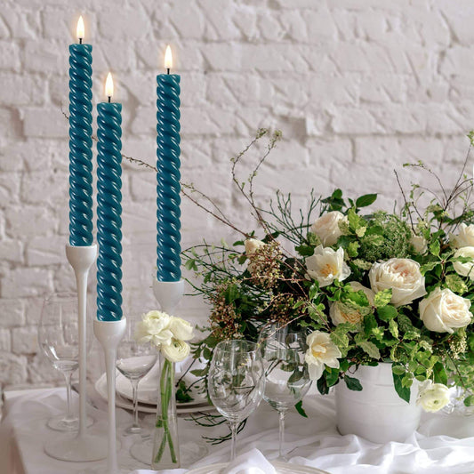 Eywamage Bougies coniques sans flamme en spirale bleue avec minuterie à distance