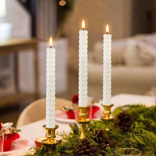 Ces bougies sans flamme en spirale ou effilées sont parfaites pour certaines occasions spéciales, comme le dîner de Noël, une soirée à thème, un mariage, la décoration de la maison ou comme cadeau. Vous pouvez placer ces bougies de fenêtre sans flamme à piles sur des chandeliers ou des candélabres pour créer un arrangement accrocheur.