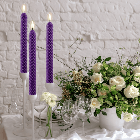 Purple Honeycomb LED Taper Candles with Remote - 6 Pack - Eywamage