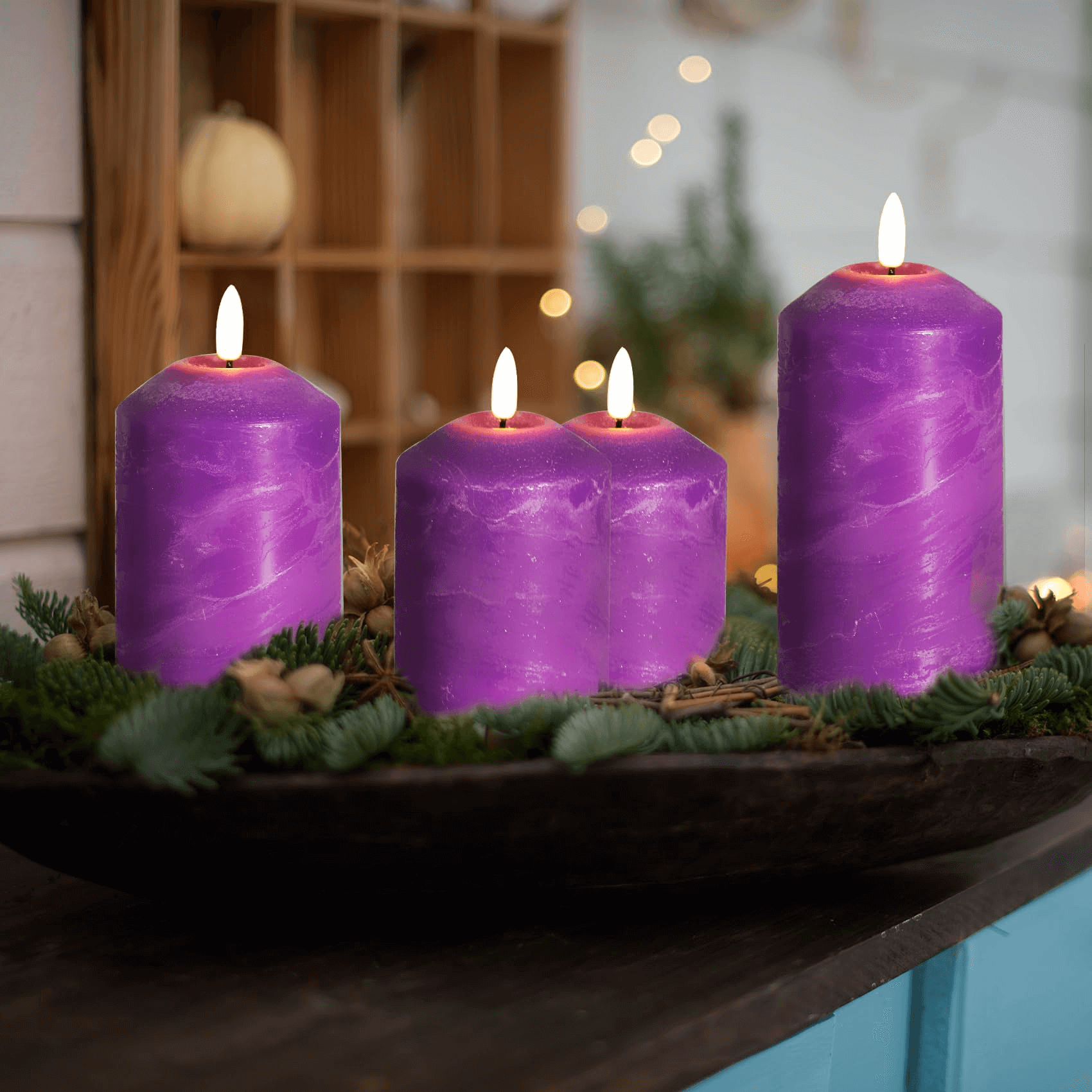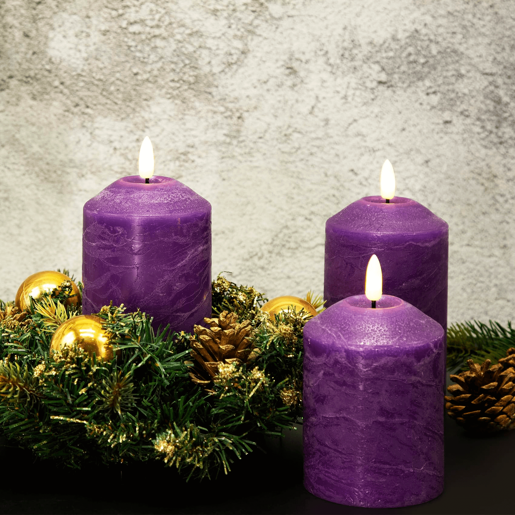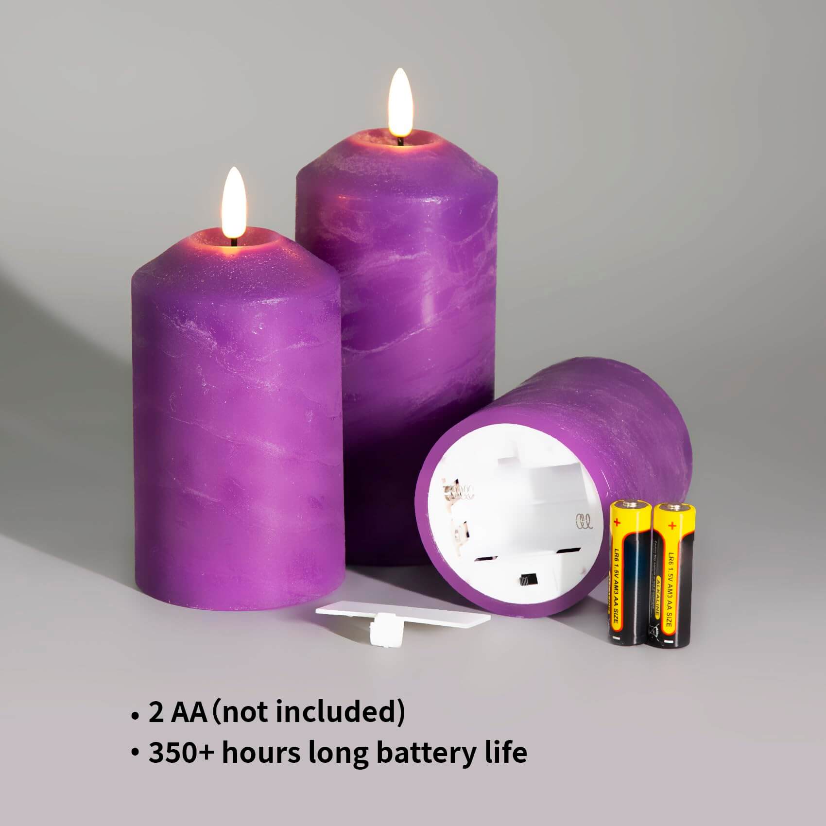 Purple Flameless Pillar Candles with Remote - Set of 3 - Eywamage