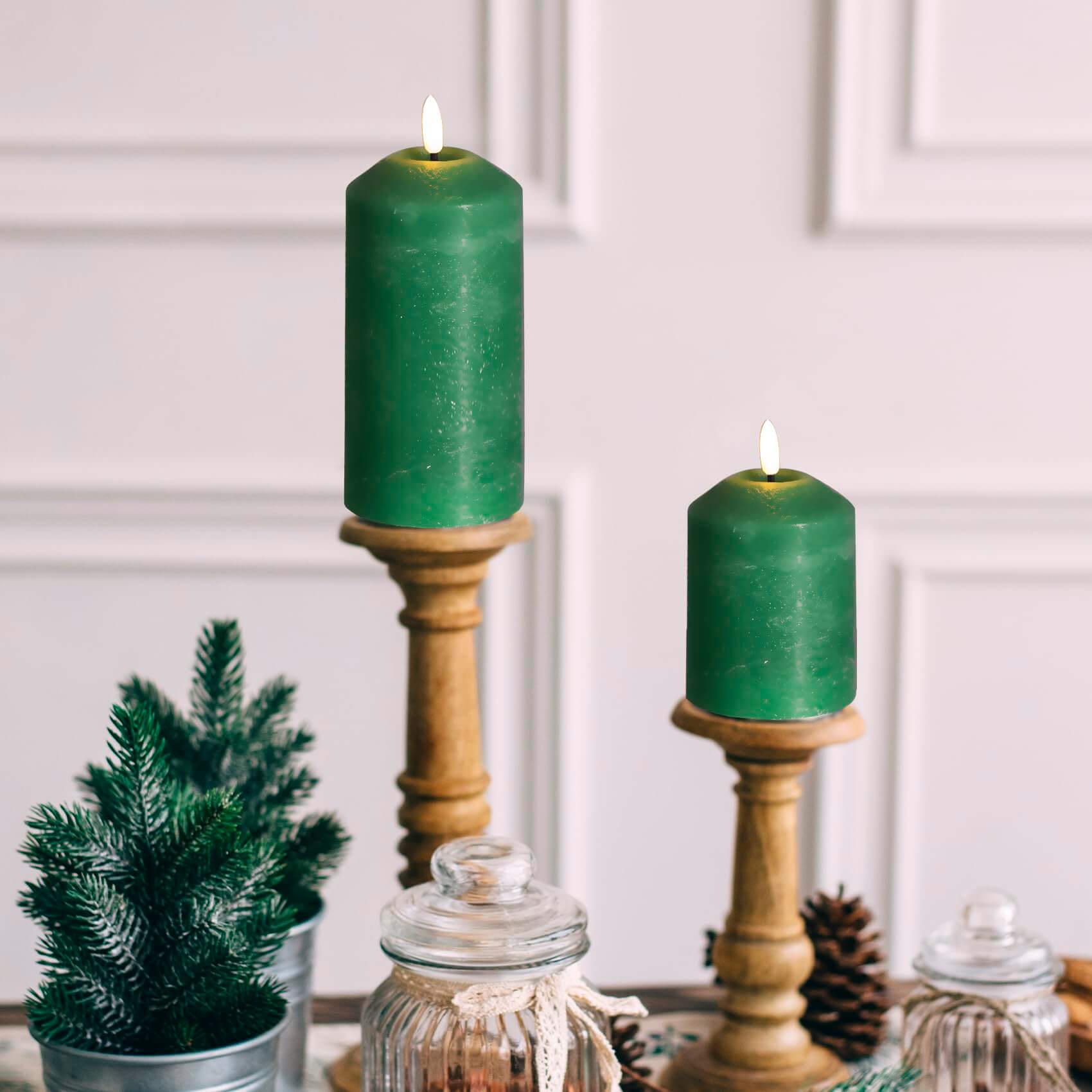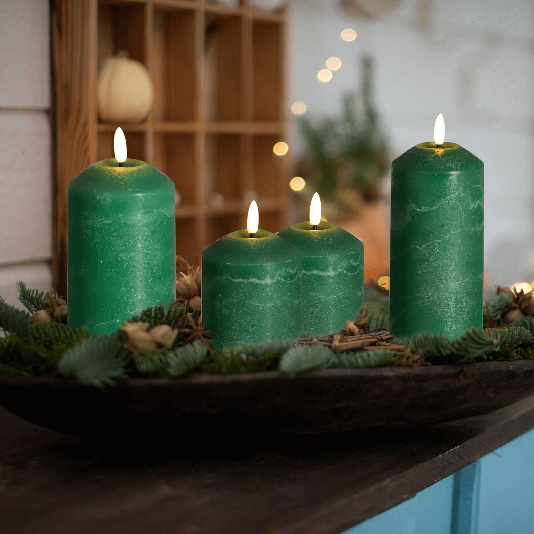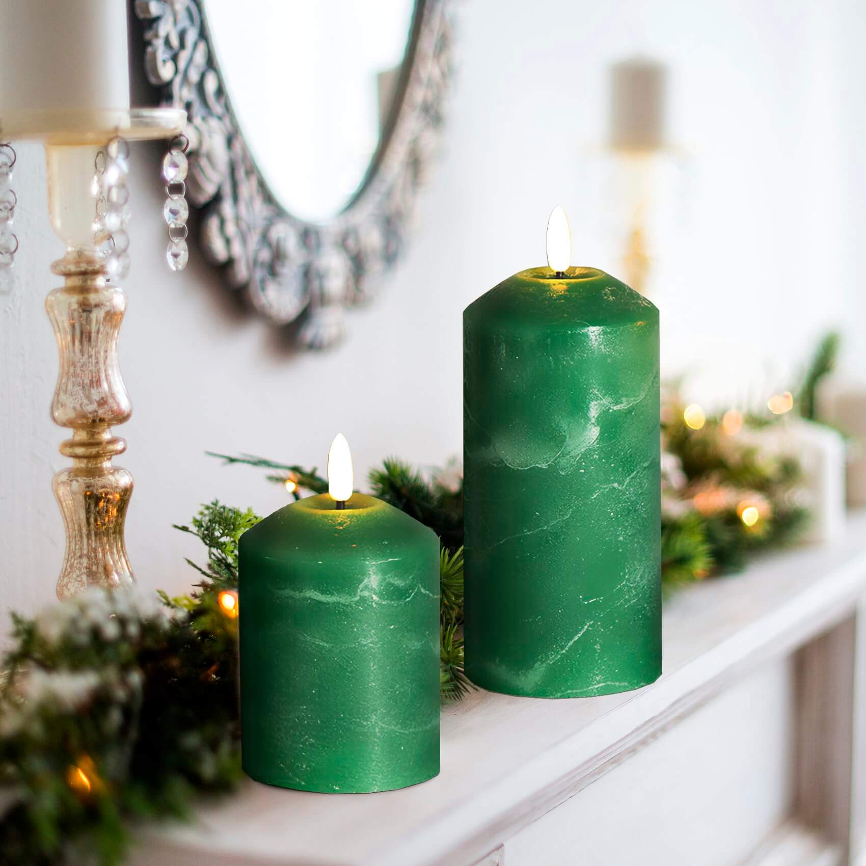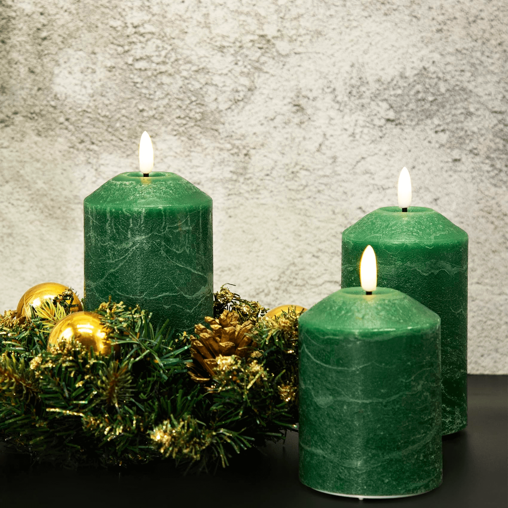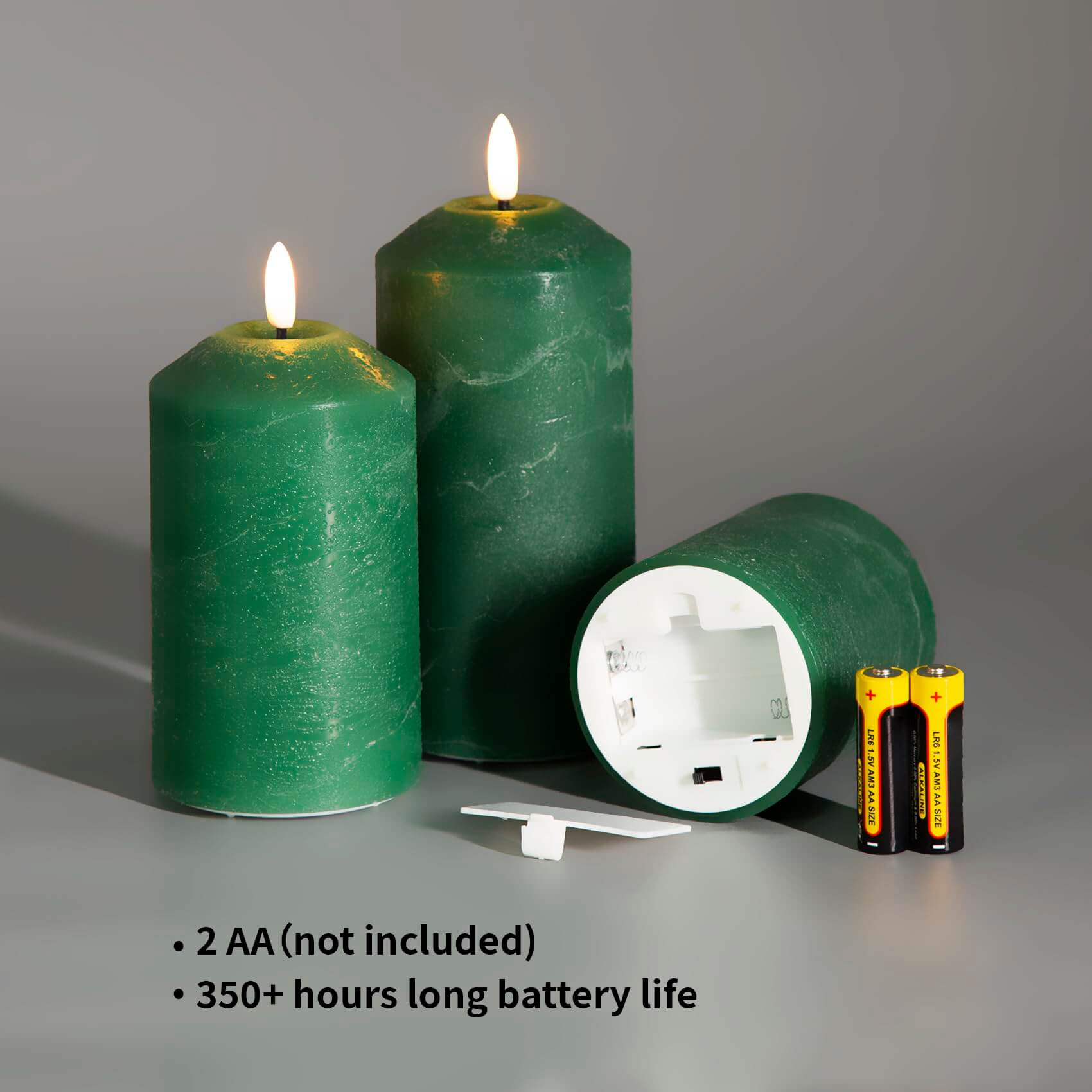 Green Flickering Flameless Pillar Candle with Remote-3 Piece-Eywamage