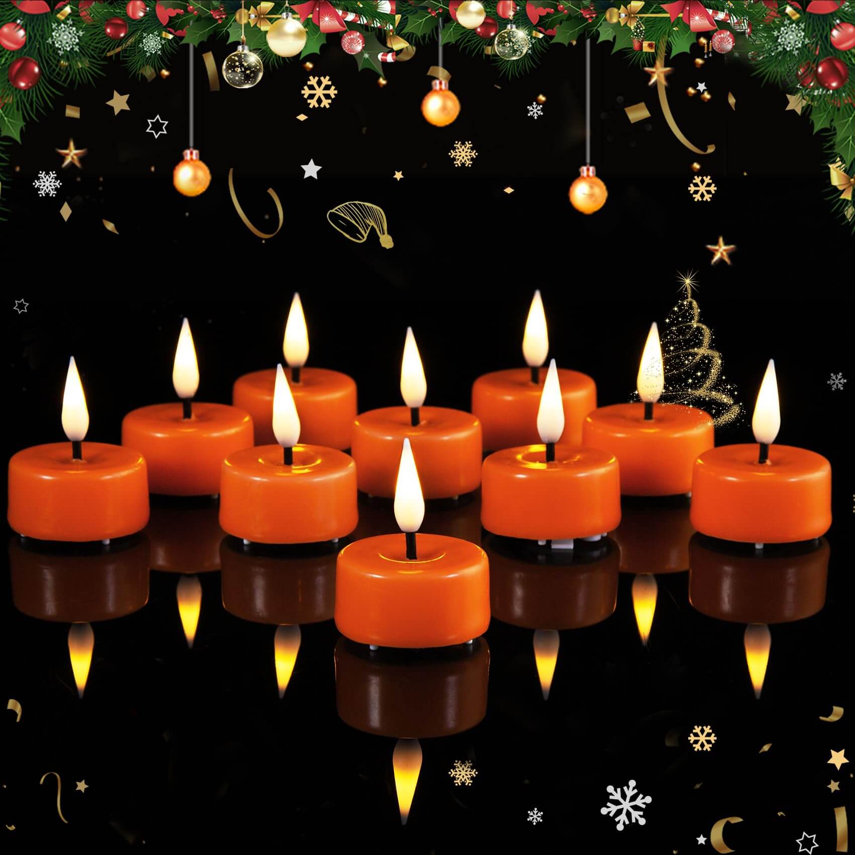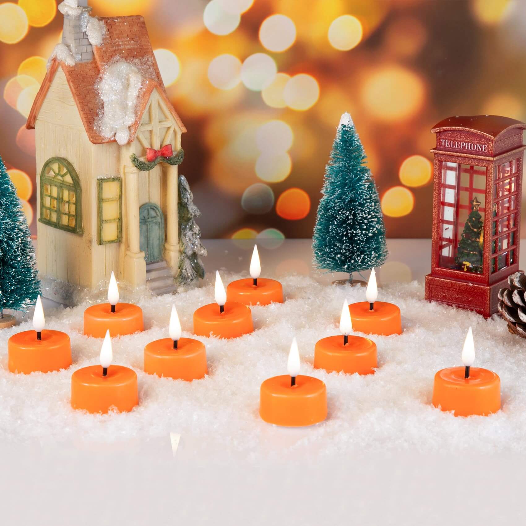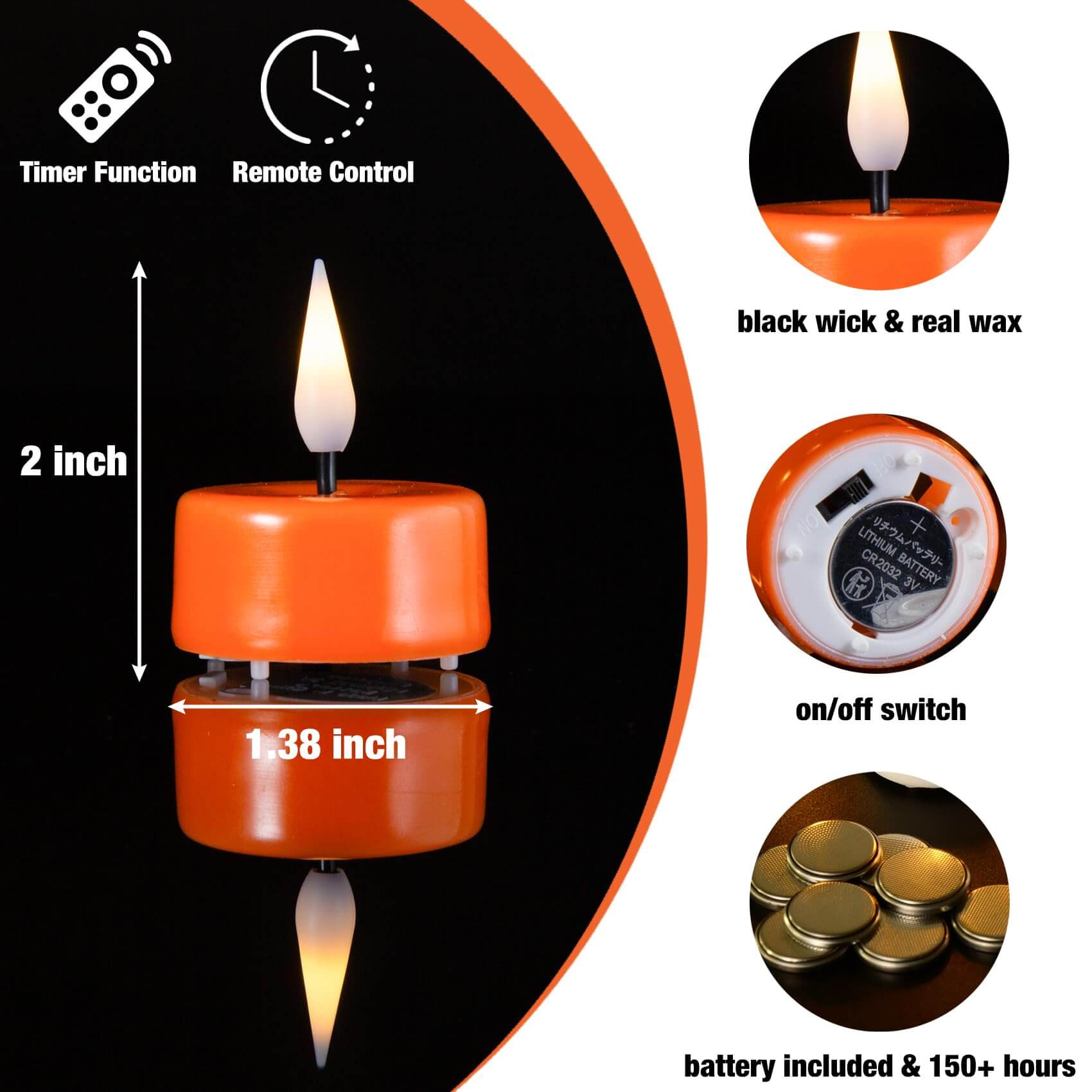 Eywamage Orange Flameless Wax Tealights with Remote Batteries, Flickering Fall Halloween LED Tea Candles Set of 10